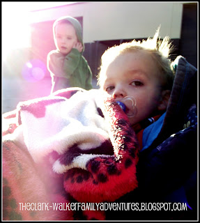 Today we added an extra stop to our route so that we could pay a bill. Halfway through our neighborhood, C decided that he'd rather walk with his brother than sit in his stroller. How did he let me know? By standing up in his stroller (while moving might I add) and demanding "Mom out! Walk!". So like any good mother I let him run the last 300 feet before we hit a major street. This time I remembered to buckle both straps in the stroller.